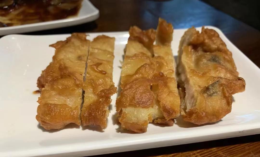 辣肉丁切得匀称,咸鲜微辣,吃口酥嫩,经典本帮风味。冷面开胃,越吃越饿,只一份辣肉浇头不能满足,另添一份清口浇头:银牙、雪菜、木耳面筋或四喜烤麸,佐餐的三丝春卷酥皮薄极了,两齿一碰直淌汁水。炸猪排开面可人,更是脆嫩了得。哦呦!从炸物里竟吃出了弄堂年味。