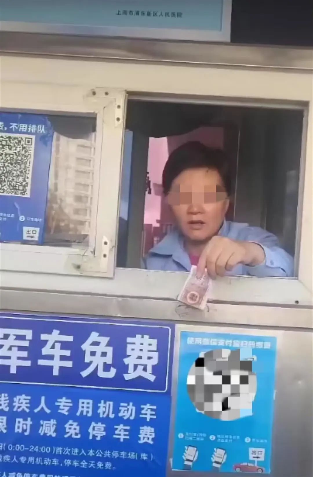 视频内容显示,事发地点位于上海市浦东新区人民医院。网友称在医院停车场出口缴纳停车费时,收费员拒收5角纸币,并当场撕毁。问及原因,收费员表示:“我们不收,没有为什么,这个钱我帮你付,无所谓的。”