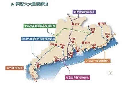 2021年2月,广东省自然资源厅发布了《广东省国土空间规划2020—2035年》公众版。规划提出,省域空间内将预留纵横两条高速磁悬浮廊道,分别是纵向的京港澳高速磁悬浮以及横向沿海的沪(深)广高速磁悬浮廊道。广州成为两条磁悬浮交汇点。
