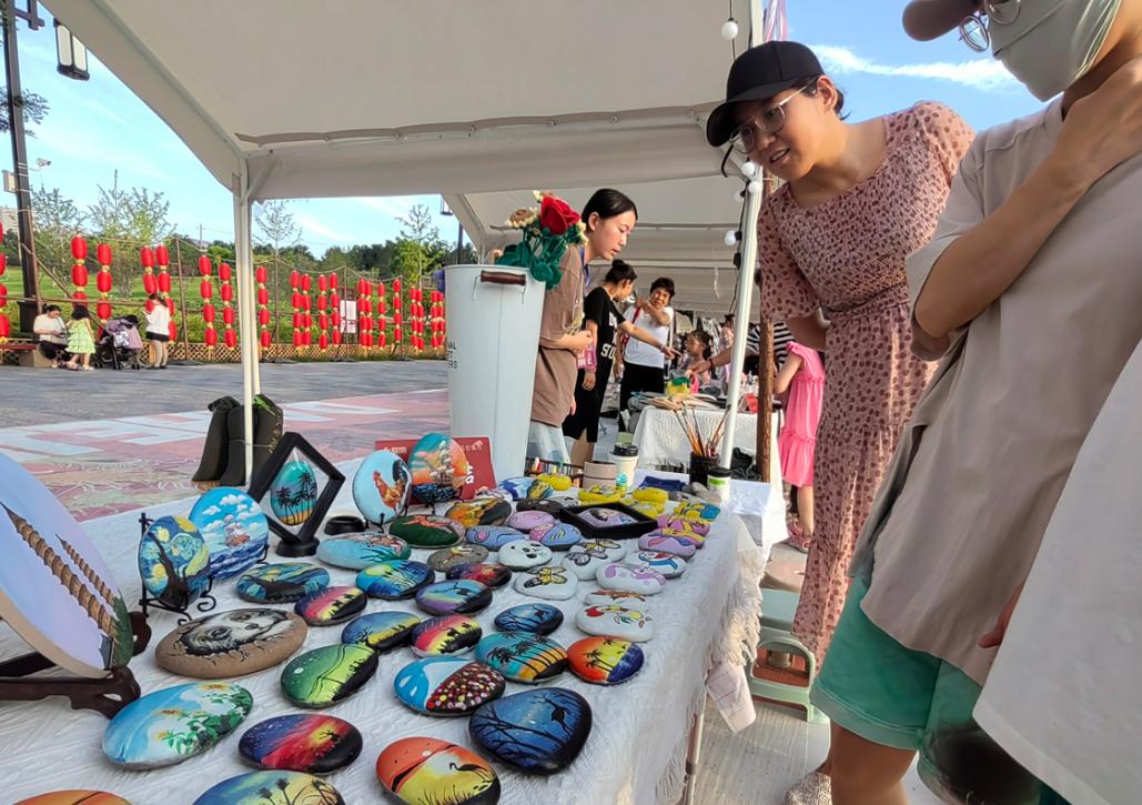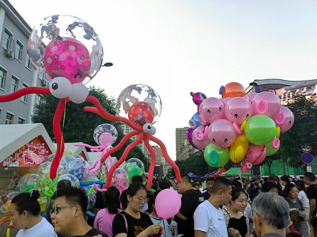 ▲集市上人头攒动市民们吹着夏夜的凉风,漫步于双塔公园,看美景,听戏曲,吃小吃,尽情享受着这份夏日独有的惬意与幸福。