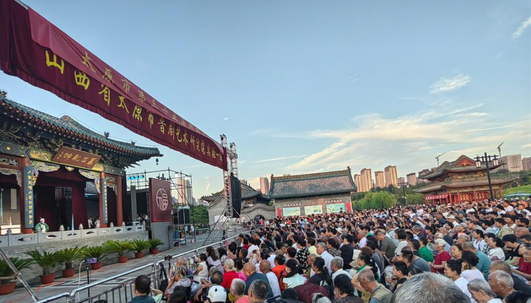 ▲市民走进双塔公园,感受传统庙会热闹氛围山西日报新媒体记者吴晓庆报道 8月6日,太原双塔公园广场上,人流攒动,热闹非凡。戏台上晋剧表演,异彩纷呈,台下戏迷们尽情欣赏,喝彩声、叫好声不绝于耳。