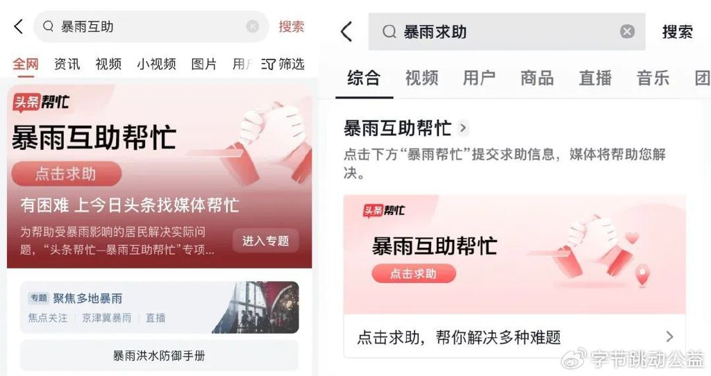 ·今日头条、抖音联合媒体开通京津冀“暴雨互助帮忙”通道