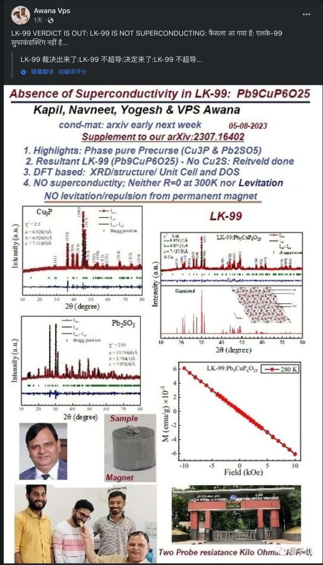 对于缺少零电阻的证明,金教授表示测量电阻时的噪声图和数据已经发表在第一篇韩语论文中,所以没有添加到arXiv的英语论文中。