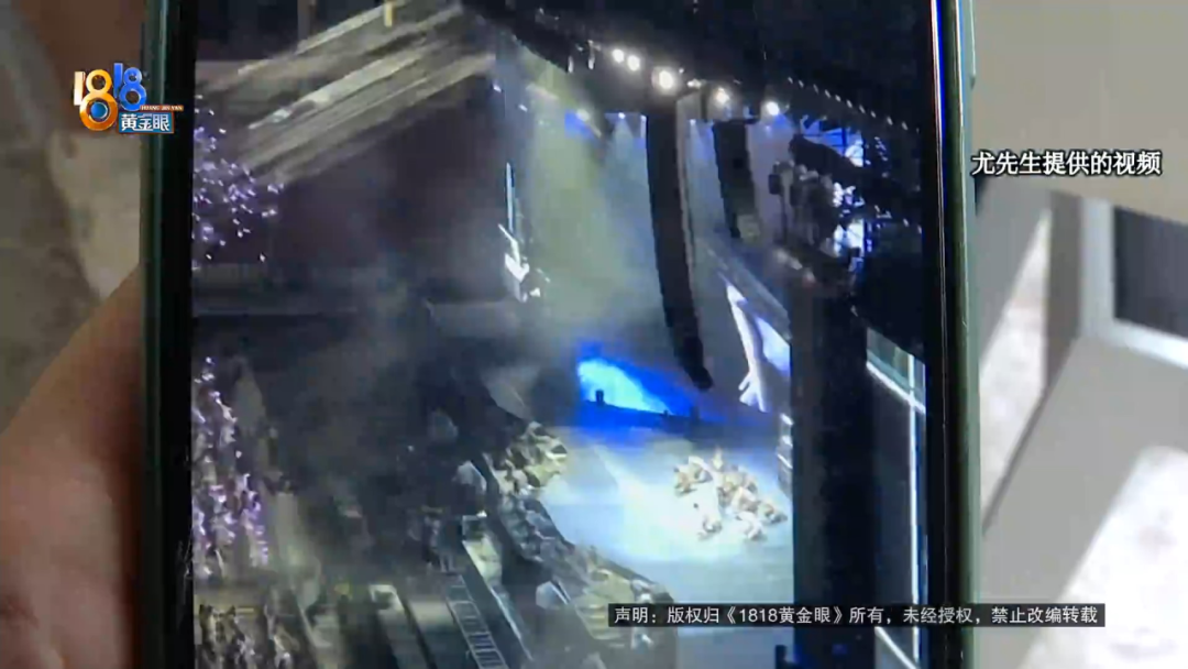 画面中尤先生的位置与舞台大屏幕几乎平行,很难看到大屏幕的画面,因为舞台角度的关系,也没法看到蔡依林本人。尤先生说后来他不得不坐到一条走廊上,看了半场演出。