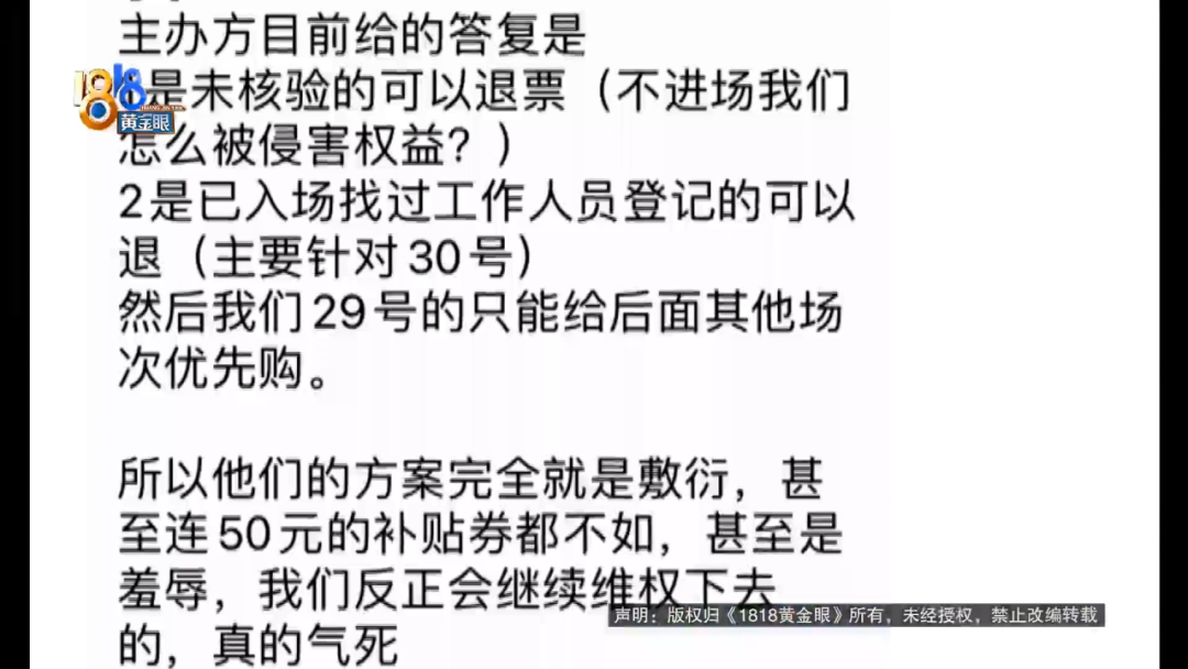 这主要针对30号的观众,29号的观众只能给后续场次的优先购权限,他们无法接受会继续维权。