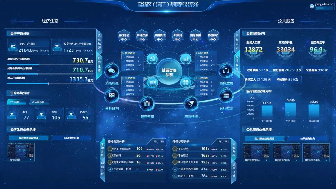 “人、房、企、事、物”等社会治理基础要素尽在掌握中,基层智治综合应用作为街道、社区、网格的事件流转中枢,受理端依托滨江发布等掌上终端,实现一般事项智能交办、高频“一件事”分类流转、疑难复杂事项联动处置,平均每个事项由2.89个部门协同处置;已完成5.1万余个事件的协同处置,涉及部门、街道、社区等联动单位52个。