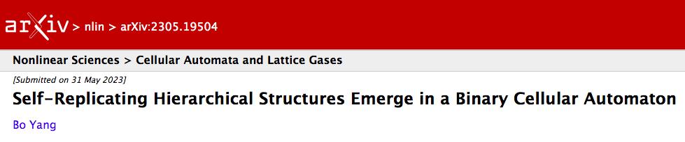 原标题:《二元元胞自动机中涌现出自复制层级结构》