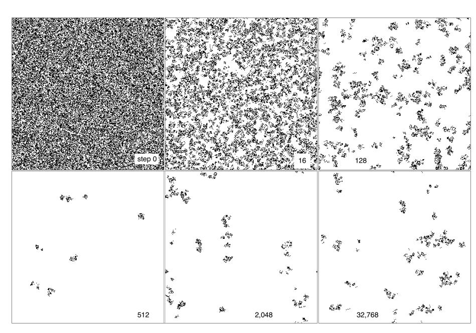 图4:在初始密度较大时,演化产生的近似随机图案。