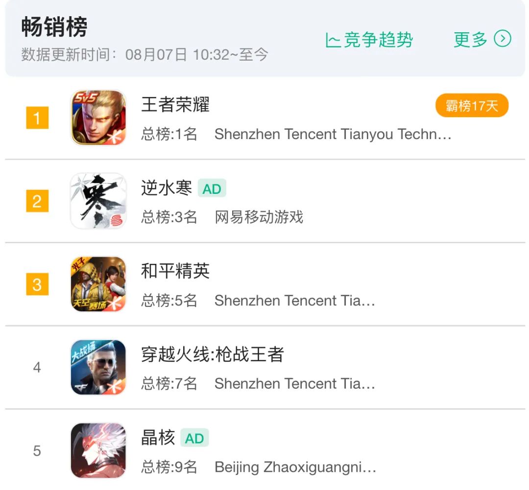今年暑期档,游戏畅销榜前排迎来少有的新面孔。