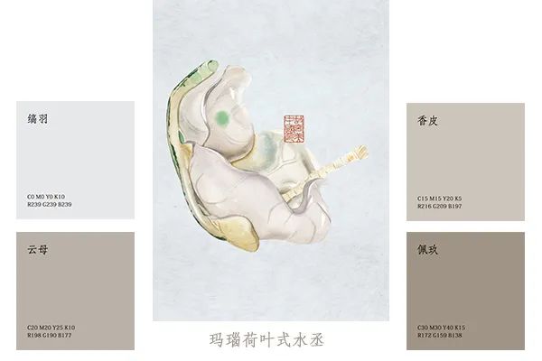 “缟羽”白露降之起色。未经练染的精细生坯织物本色。许慎《说文解字.糸部》曰“缟,鲜色也”。“香皮”白露降之承色。古代纸色,天然树皮,灰白皮色。《北户录》“香皮纸”条云“罗州多栈香,树身如柜柳条,其花繁白,其叶似橘皮,椹捣为纸,土人号为香皮纸,作灰白色,文如鱼子笺,今罗辨州皆用之”。
