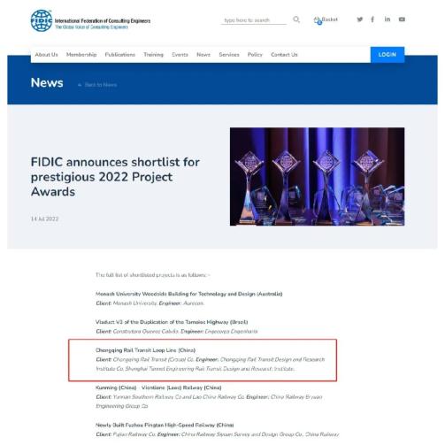 丨获2022年度“菲迪克工程项目奖”丨2022年9月13日,国际咨询工程师联合会(FIDIC)正式揭晓2022年度“菲迪克工程项目奖”,获奖项目包括来自全球的9项高质量建筑和基础设施项目,我国共有3项工程获此殊荣,重庆轨道交通环线榜上有名。