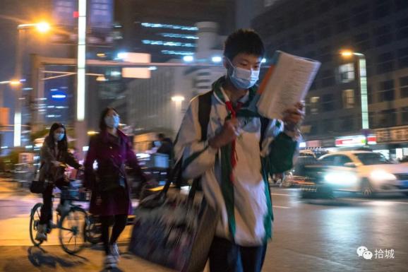 成都 - 2022年11月15日,一位手捧习题册的学生正走在放学路上。摄影/郝文辉心选感言