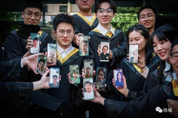北京 - 2022年5月31日,中国地质大学(北京)校园,解除区域管控几天后,地质大学的大四毕业生穿上了学士服拍摄最后的合照。摄影/雷宸心选感言