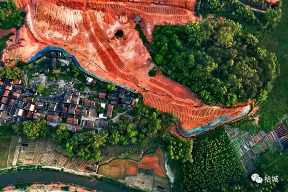 肇庆(广东)- 2022年4月4日,一个开发中的工业园区,水土流失造成的形状宛如一只大脚,踏向村庄。摄影/朱健兴心选感言