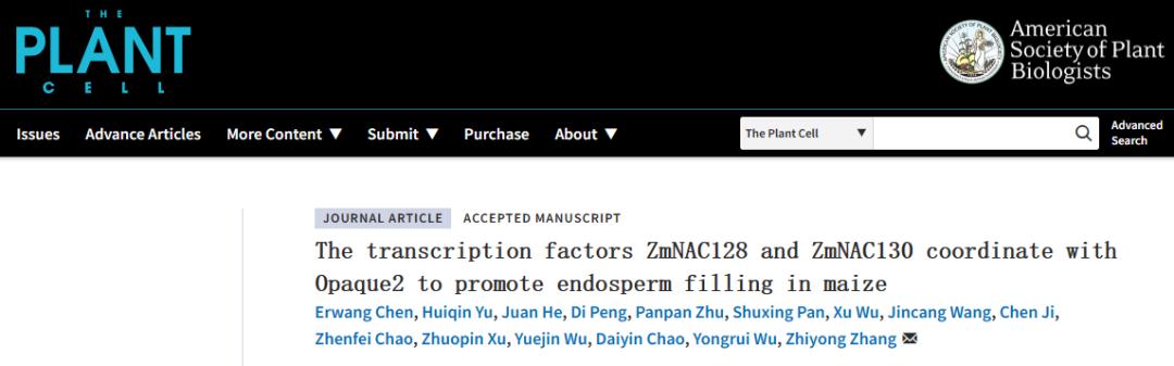 近日,中国科大张志勇团队在国际主流杂志The Plant Cell上发表了题为“The transcription factors ZmNAC128 and ZmNAC130 coordinate with Opaque2 to promote endosperm filling in maize”的研究论文,揭示了玉米籽粒灌浆发育调控新机制。