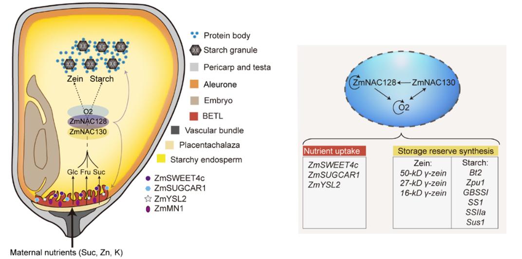 ZmNAC128和ZmNAC130调控玉米籽粒灌浆模式图