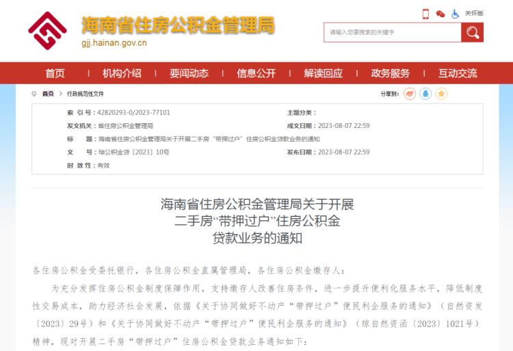 原标题:《海南:支持开展二手房“带押过户”住房公积金贷款业务》