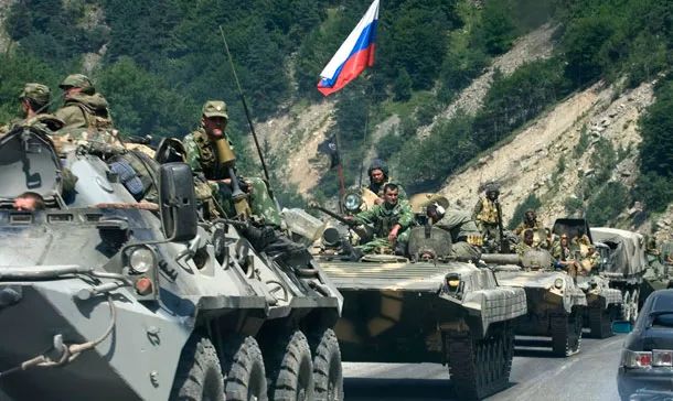 2008年8月9日,驶向南奥塞梯的俄军装甲车队/美联社2008年8月8日,格鲁吉亚与俄罗斯为争夺南奥塞梯的控制权爆发战争。在国际各方的调停下,格鲁吉亚和俄罗斯分别在停火协议上签字。俄军于8月18日开始撤离格鲁吉亚,战争结束。
