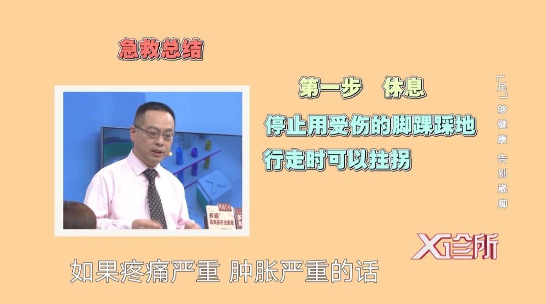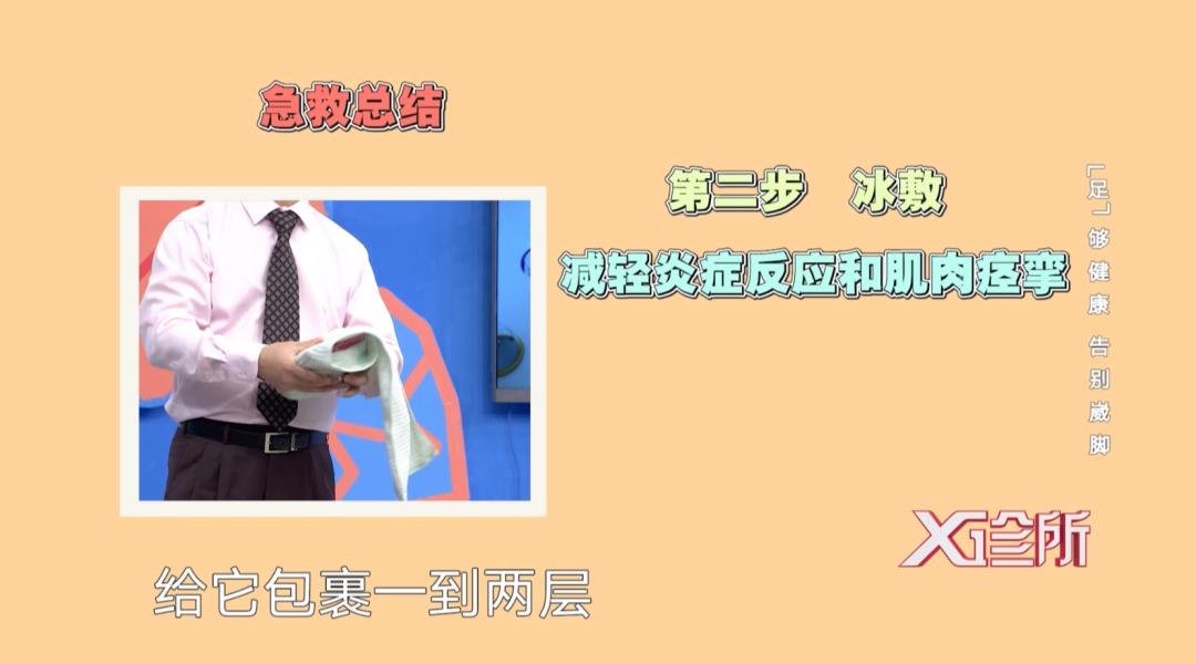 崴脚后不要慌张,首先我们要做的就是如何学会急救。张主任告诉我们,有一套非常经典的急救步骤可以教给大家。