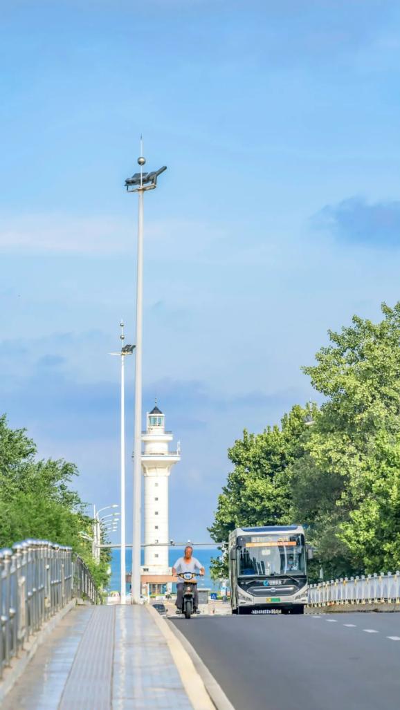 行驶在通往大海的公路上,路的尽头是洁白灯塔,蔚蓝大海,就像是童话故事里的场景,却在日照真实上演着,那就是灯塔广场。