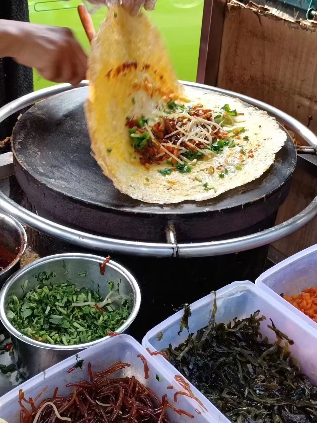 @ 小杨同学的生活记录日照煎饼也讲究,万物皆可卷,最常见的便是卷大葱,或是卷豆腐和辣椒,刷上香浓的豆瓣酱就好吃极了,若是再卷上几条小黄鳝子鱼,那就更鲜了。