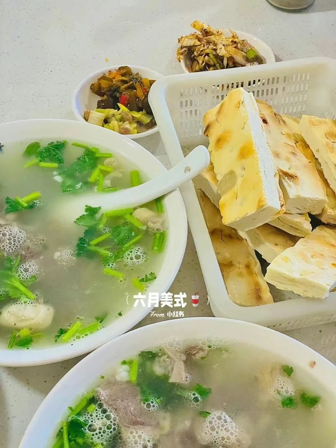 @ 六月美式通常还会配上大饼和小榨菜,撕上几块莒县大饼,浸泡在热乎的羊汤里,饼子吸足了汤汁的鲜美,又软又鲜又香,吃起来不要太舒服。