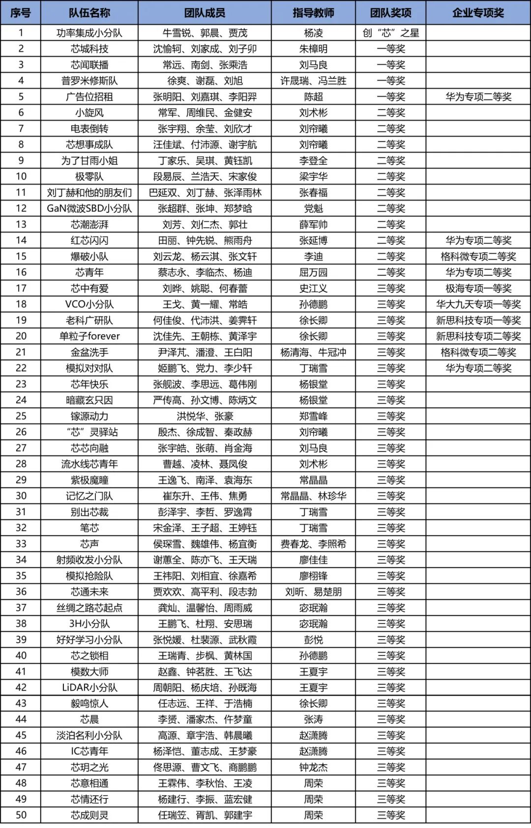 经过基础笔试、上机测试、项目答辩和决赛路演等环节的激烈角逐,西电学子共斩获决赛奖项60项,包括大赛最高荣誉奖——创“芯”之星1项、一等奖4项,二等奖11项,三等奖34项,以及企业专项的新思专项一等奖1项、二等奖1项,极海专项一等奖1项,华大九天专项一等奖1项,华为专项二等奖4项,格科微专项二等奖2项。同时,杨凌、许晟瑞、冯兰胜、朱樟明、刘马良和陈超等6名教师获评“优秀指导教师”荣誉称号,学校连续六届荣获“优秀组织奖”。优异的竞赛成果充分彰显了西电集成电路人才培养的卓越水平。
