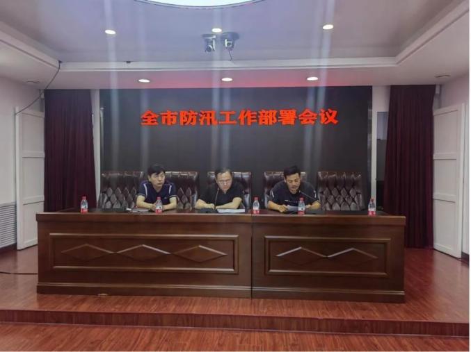 8月3日20时,舒兰市召开防汛工作部署会议,左一为骆旭东。(吉林省舒兰市人民政府办公室供图)接到消息后的骆旭东立马起身:“我不放心,必须到现场!”他带着水利部门专家倪峰和熟悉当地情况的张郅昭,匆匆赶赴受灾一线。