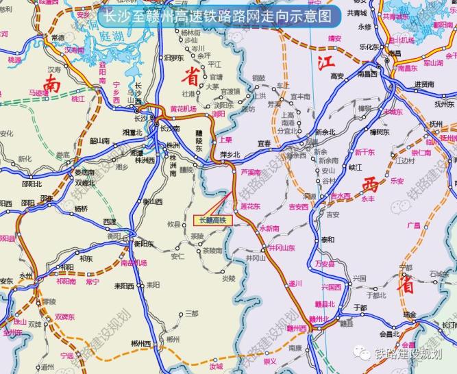 在2023年4月,湖南省政府和江西省政府官网发布《新建长沙至赣州高速铁路环境影响评价第二次公示》。公示内容显示,工程起于湖南长沙市的长沙西站,止于江西赣州市的赣州西站,途径萍乡市、株洲市、吉安市。405.315km(湖南段131.842km、江西段273.473km),全线设黄花机场、浏阳、上栗、萍乡北(既有)、芦溪南、莲花东、永新南、井冈山东、遂川、赣州西(既有)、赣州北等车站11座;另外包含:长株潭枢纽配套工程、萍乡地区配套工程和赣州枢纽配套工程。主要技术标准:高速铁路、设计时速350km/h、双线、电力牵引、无砟轨道。