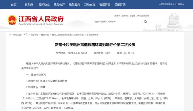 8月8日,《新建长沙至赣州高速铁路江西段施工图审核招标中标结果公示》在江西省公共资源交易平台发布,项目离全线正式开工又近了一步。该项目建成后,长沙至赣州的交通时间将由4小时缩短至2小时以内。
