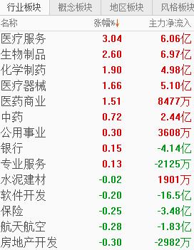 消息面承压的医药股,意外成了A股的“香饽饽”。周三医药股全线爆发,占据了行业涨幅榜前6席位,医疗服务涨超3%,生物制品涨2.6%,化学制药、医疗器械、医药商业涨超1%,中药涨0.72%。至于概念,涨幅靠前的更是清一色医药,CRO以4.05%涨幅居首。