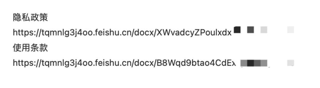 有趣的是,由于苹果应用商店的规定,所有上架的App都必须包含详尽的《用户协议》和《隐私政策》等开发者信息。对此,许多“FleeceGPT”为了节省精力,选择将这些内容托管在诸如腾讯文档和飞书等云办公平台上,而非成本更高的自建网站。