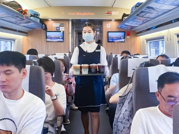 近日,中国铁路上海局集团有限公司上海华铁旅服公司持续优化服务供给,在部分高铁上推出了口感丰富丝滑、清凉冰爽的“现磨冰咖啡”服务。