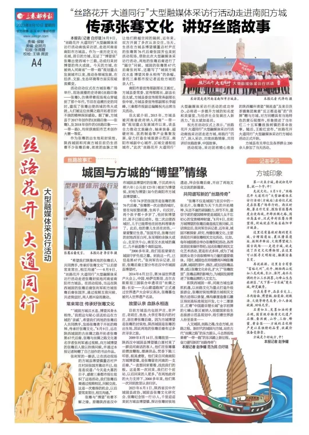 8月9日,“丝路花开 大道同行”大型融媒体采访行活动南线采访团,走进河南省南阳市方城县。作为一座历史文化名城,昔日的方城,见证了“博望侯”张骞出使西域十三载,功成归来封博望的伟大成就。今天的方城,在被纳入河南省“一带一路”规划重点发展城市以来,推动各领域发展,在经济、文旅、生态环境等方面实现破茧蝶变。