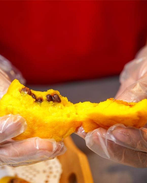当金黄的玉米面遇上香甜顺滑的红豆馅料