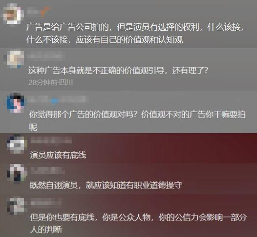很多网友并不同意他的观点,纷纷留言称“演员必须要底线”“演员有选择的权利,该知道什么该接,什么不该接”……