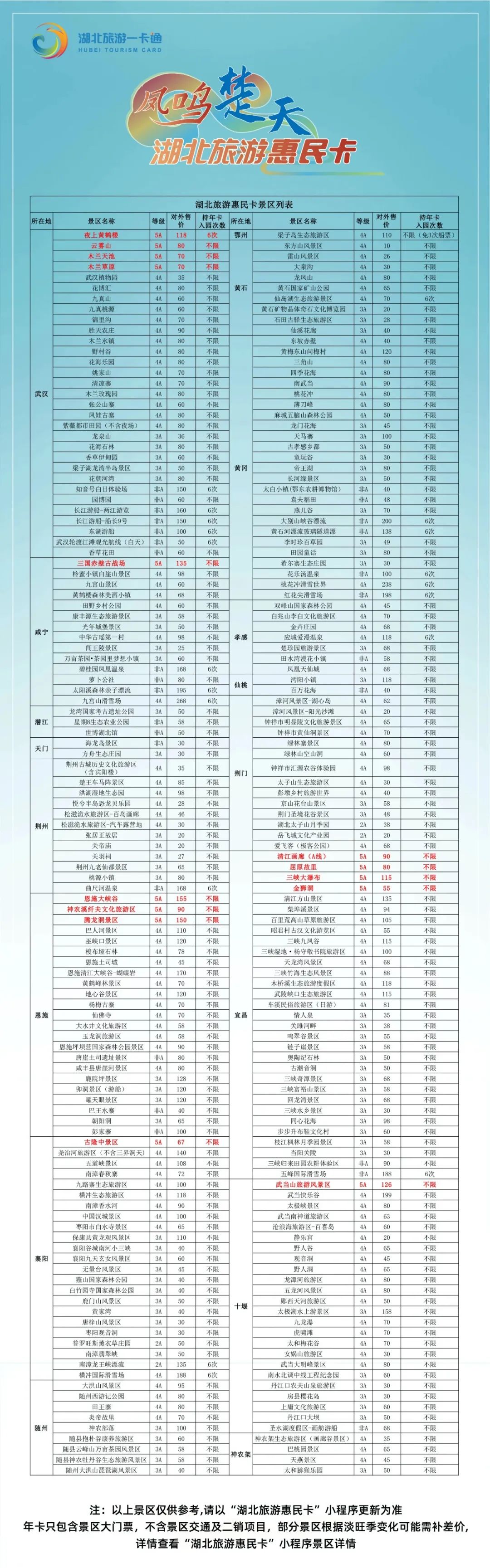 另外,还有专门的湖北旅游惠民卡优惠券,可用于“湖北旅游惠民卡”涵盖景区。