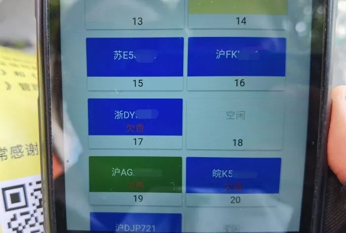 据了解,道路智慧停车场采用高位摄像头抓拍的方式记录停车行为,并自动计费。车主离场时,通过扫码绑定车牌,即可完成自助缴费。管理方也为停车巡查员配备了手持终端设备,巡查员通过设备可以看到当前停车位的使用情况。“蓝色是蓝牌车辆停放,绿色是新能源车辆停放,空位会显示空闲,欠费的车辆系统会提示。”停车巡查管理员黄蓓兰一边操作手持终端一边介绍,“对于前期有欠费的车辆,我们会在车辆前档放置追缴单,车主可通过‘上海停车’APP扫码补缴,我们也可以用手持终端设备帮助其完成缴费。”