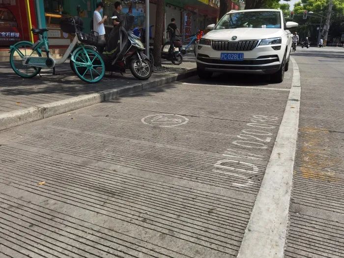 8月10日上午,记者在南翔镇民主街看到,道路北侧的路侧停车位上已经竖起了新的停车指示告知牌,并标注了计费方式和缴费二维码。