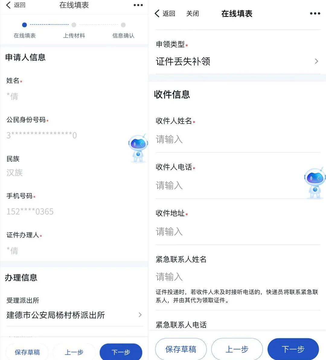 2.在线填写申请人信息、收件信息并上传现场人脸照片并进行信息确认;