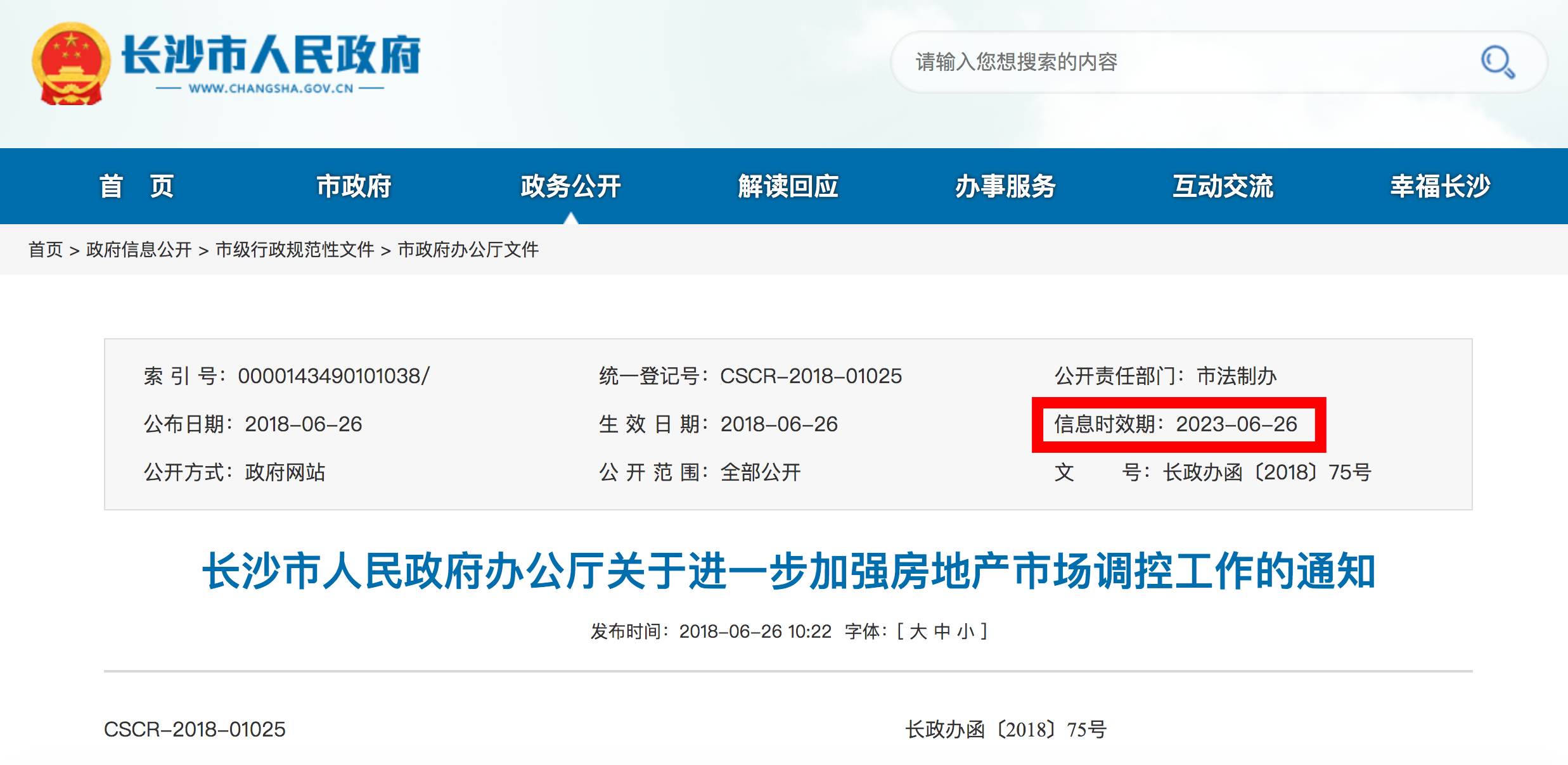 从问政湖南平台可以看到,多位网友在问政湖南平台留言,建议调整长沙限售政策,且有网友指出,2018年6月26日印发的《关于进一步加强房地产市场调控工作的通知》长政办函〔2018〕75号,该文件信息时效期为2023年06月26日,网友咨询政府什么时候有新的延续性政策出来?