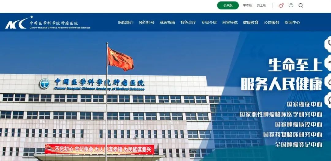 截图自中国医学科学院肿瘤医院官网