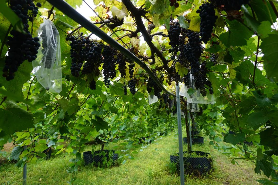 ‘芳特娜’‘拉克罗斯’抗病能力和加工性强,可用于庭院绿植、立体绿化和酿酒。