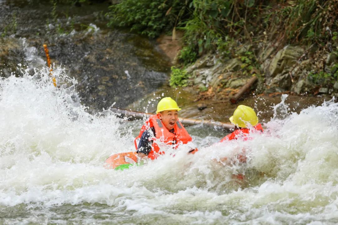 景区负责人介绍,漂道全程长5公里,总落差100米,漂流时长100分钟左右。上半段惊险刺激,下半段相对平缓,清澈见底的浅水溪流适合小朋友戏水捞虾,全程降温又解压。