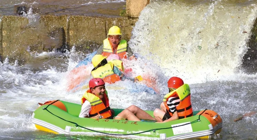 蜿蜒穿梭于密林峡谷之中,在时而湍急、时而平缓的流水中顺流而下,在大自然的浪花中体验速度与激情……黄石洞生态漂流具有鲜明的“亲子漂流和湘赣独一无二的纯山泉水”特色,在这里不仅能感受到阵阵清凉,还能欣赏九岭山脉山泉潺潺、青山相依的秀丽风景。