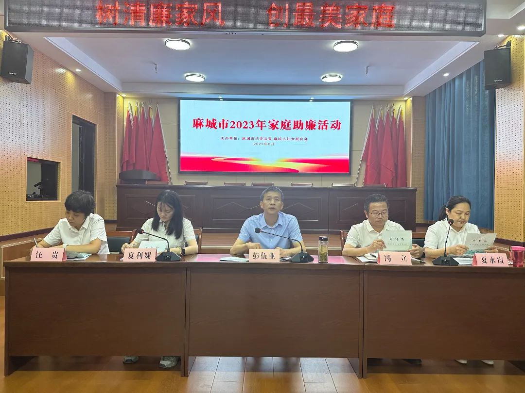 为落实麻城市党风廉政建设宣传教育月活动安排,发挥家庭在反腐倡廉中的重要作用,进一步推进麻城市各级党政机关和广大党员干部清廉家庭建设,8月10日,市纪委监委、市妇联联合开展“树清廉家风 创最美家庭”麻城市2023年家庭助廉活动。市委常委、市纪委书记、市监委主任彭伍亚,乘马岗镇党委副书记、镇长冯立,市纪委常委夏利婕,市妇联党组成员、副主席夏永霞、汪贵,2021年换届以来新提拔重用的正科级领导干部家属代表参加活动。