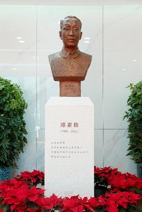 家栋楼内有邓家栋先生雕塑及纪念阁:邓家栋先生雕塑位于家栋楼1楼、纪念阁位于3楼。馆藏珍贵雕塑1座,照片20张,手稿2份,书籍10本。邓家栋先生雕塑由国际著名雕塑大师吴为山先生所做,2022年2月24日由王辰院校长亲自揭幕。邓家栋先生纪念阁通过图片和实物展现了邓家栋先生从北京协和医学院毕业、留校工作、结婚、创建血研所、担任国家领导人的保健医生、至晚年仍笔耕不辍的人生历程。一座家栋楼,半部血液史。家栋楼见证了血研所科学家们肩负国家使命,励志开拓创新的光辉历程,讲述了血研所从承载国家使命诞生到引领我国血液学事业发展的曲折、辉煌历史。在这里可以参观了解具有时代特点的百年建筑家栋楼,了解我国血液学事业发展史、我国的血液学专家是怎么在没有计算机的情况下进行血液学基础信息流行病学调查、我国第一例自体造血干细胞移植是怎么在小平房里完成的。同时,在六十余年一代代血液病学家的努力下,“血癌”早已不是绝症,可以通过规范化治疗,获得良好的预后。血研所具有完全自主知识产权的中国Car-t技术是如何改变了恶性血液病复发患者的生命轨迹。与此同时,通过小老鼠、斑马鱼等生物模型,科研人员也在不断攻克血液病的发病机制,从而更好的为临床治疗提供思路,通过基因编辑,很多曾经伴随一生的基因病都能“改写命运”。