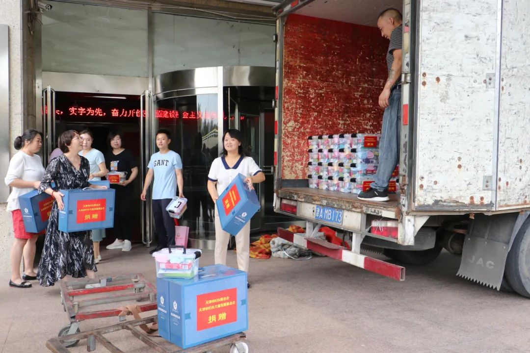 8月10日,一辆满载着150套由被子、毛巾、洗漱用品组成的爱心应急包货车从天津市妇女儿童发展基金会出发,前往静海区第六中学安置点,为受泄洪影响的妇女儿童及家庭送去帮扶和关爱。