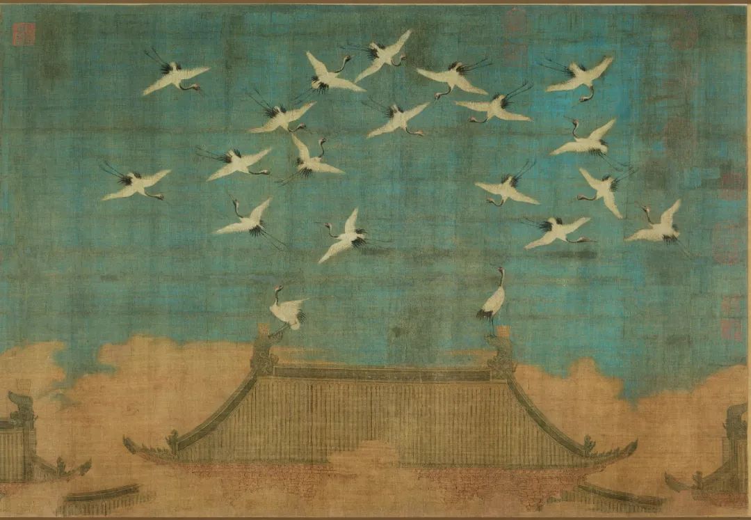 北宋时,有一天,宋徽宗赵佶走出位于汴梁的宫殿,望向庄严耸立的宣德门,只见城门上云气缭绕,群鹤飞鸣于上空,久久盘旋,不愿离去,其中有两只白鹤落在屋顶的鸱吻之上。鹤鸣声悠扬长远,犹如天外之音,仿佛在告诉世人某种预兆。