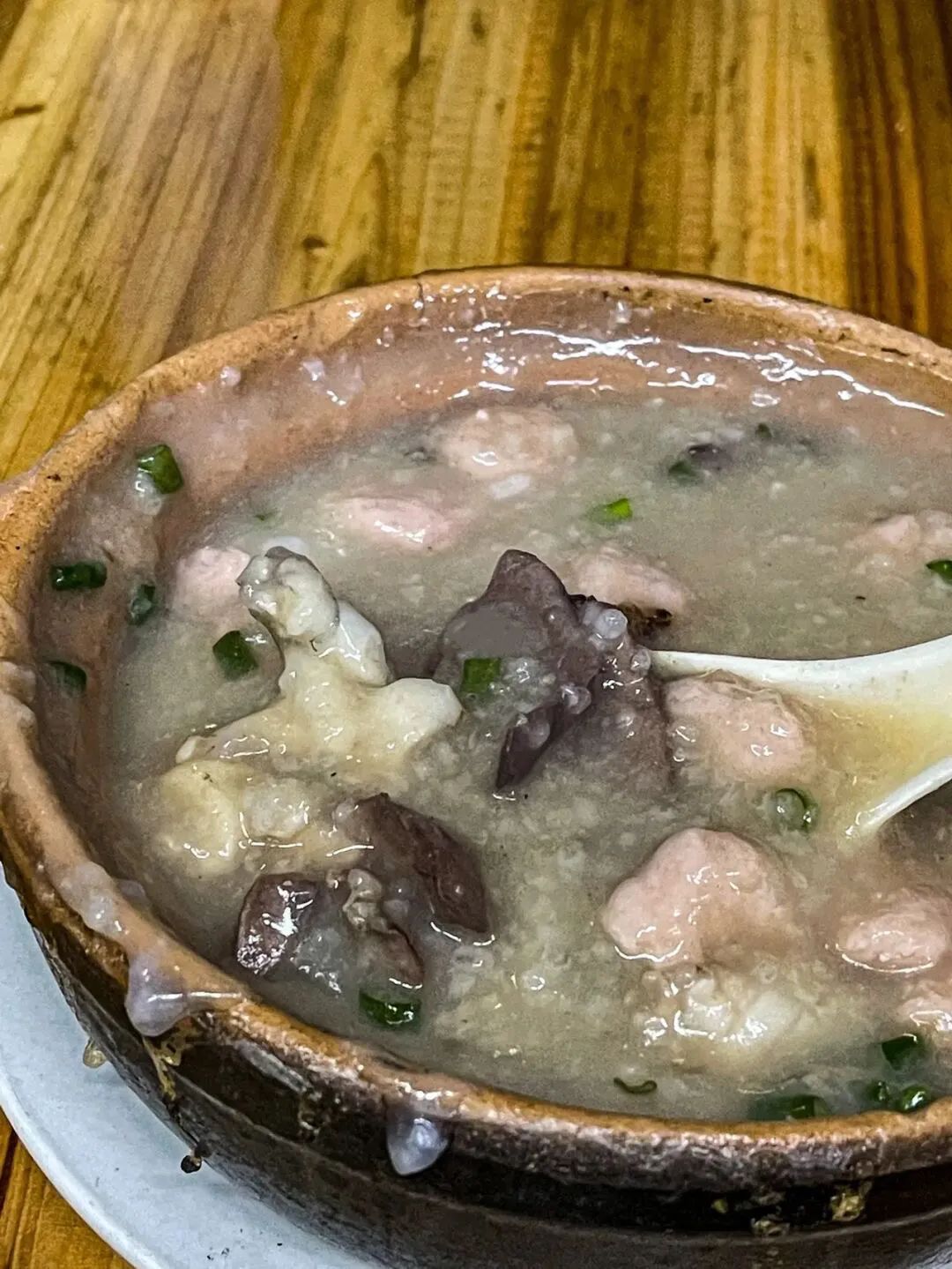 一搅和就能发现,内里的配料超级丰富,新鲜的蚬子、咸香的萝卜干、软糯的芋头,增鲜的猪骨……不同层次风味的混合,让这碗看似“平平无奇”的粥,在一入口的瞬间就征服无数人。